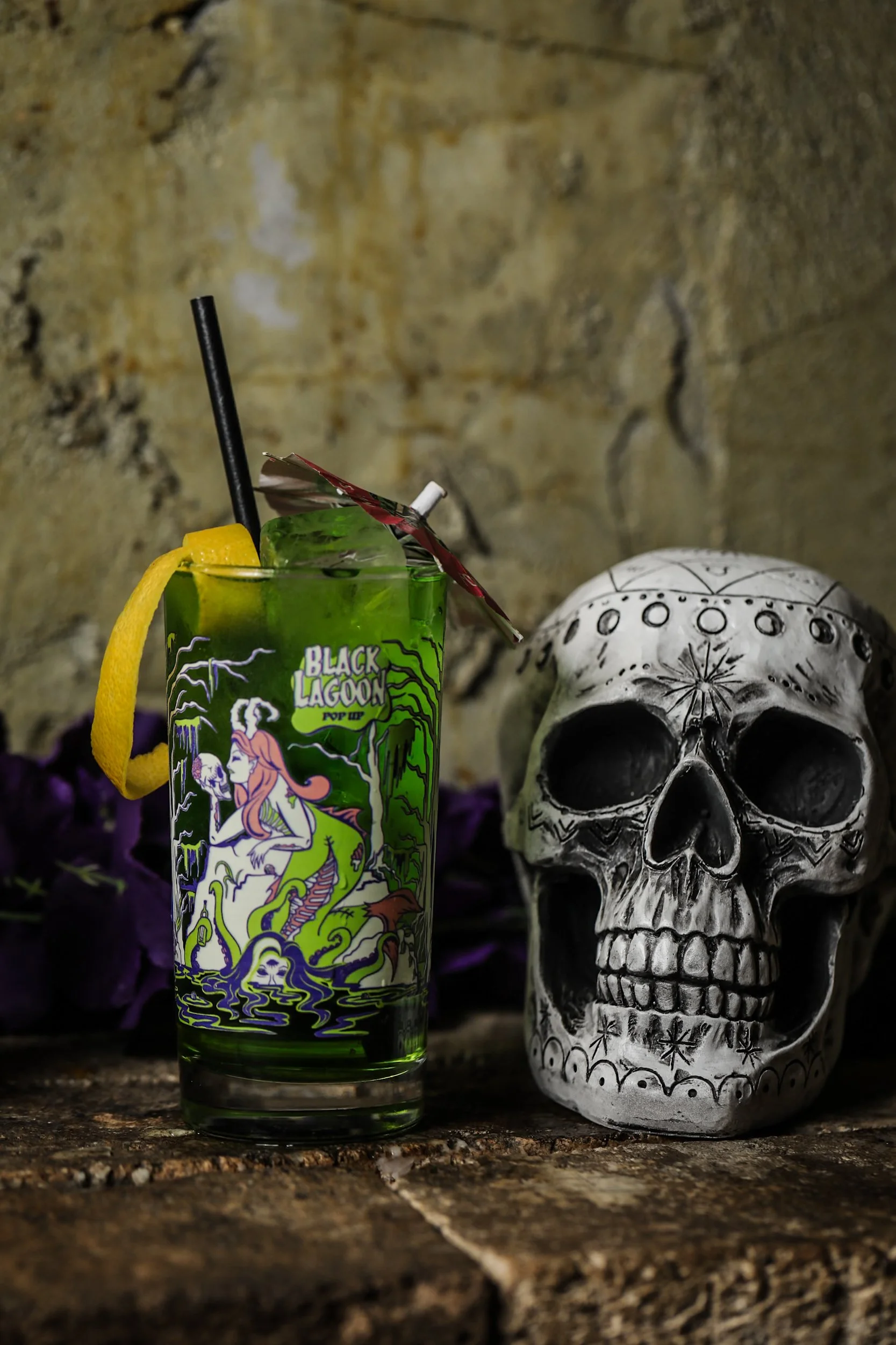 Black Lagoon isn’t your average pumpkin-lit haunted house. It’s a darkly immersive cocktail experience inspired by cult horror, goth culture, and the macabre. Picture a sea witch’s apothecary, glowing potions, creeping fog, and cocktails that look like they were brewed in a haunted lair.